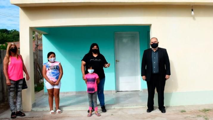 El pequeño pero emotivo acto se realizó en la vivienda de Cintia Robles, quien en compañía de sus hijas Lara Abigail y Pía Maite, recibieron al subsecretario de Obras Públicas de la provincia, Jorge Zuain quién, en nombre del Gobernador, Dr. Gerardo Zamora, dejó formalmente inaugurados las 10 soluciones habitacionales que vienen a continuar un arduo trabajo que está realizando el Gobierno Provincial para dar respuesta a la gente que más necesita.