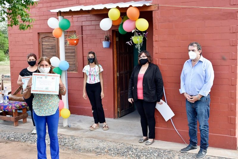 La entrega de llaves a las familias, estuvo a cargo del ministro de Desarrollo Social, Dr. Ángel Niccolai acompañando por la comisionada municipal de Garza, Nilda Azucena Jiménez. Se realizaron dos actos para cumplir con el protocolo y siguiendo estrictas medidas de seguridad del distanciamiento social por la pandemia del Covid – 19, evitando la aglomeración de vecinos.