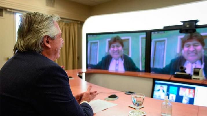 Fuentes de Presidencia informaron que, en ese contexto, Alberto Fernández mantuvo hoy una videoconferencia, desde la residencia de Olivos, con Evo Morales, el senador Leonardo Loza y el diputado Gualberto Arispe Maita, legisladores que promueven la iniciativa junto a sus pares Santos Mamani Espinoza y Grobert Nogales Grageda, quienes representan en la Asamblea Legislativa Plurinacional al gobernante Movimiento al Socialismo (MAS).