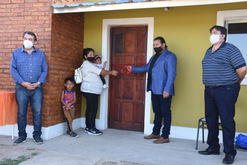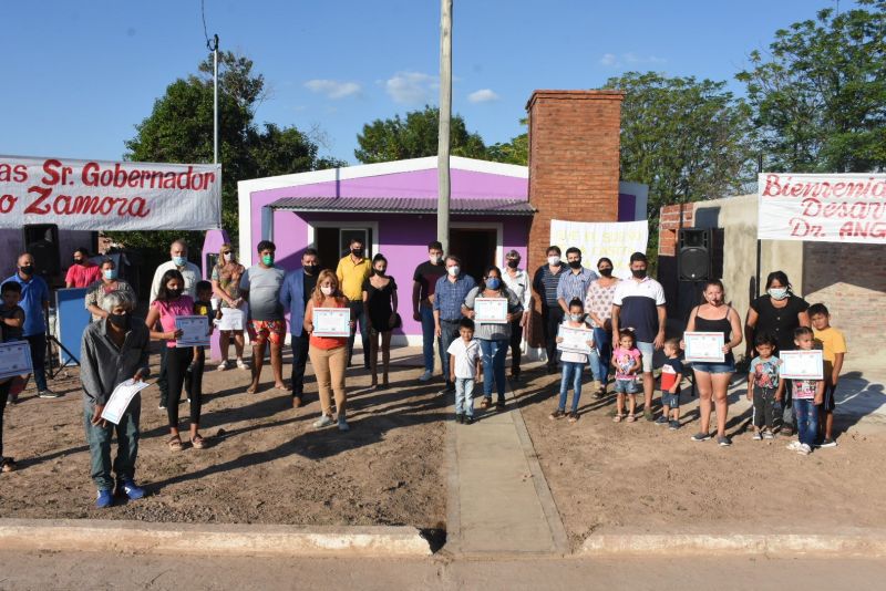 Cumplimentando los protocolos y medidas de distanciamiento social por la pandemia del Covid-19, la entrega de llaves fue presidida por el ministro de Desarrollo Social, Dr. Ángel Niccolai, acompañado del comisionado municipal de Palo Negro, Ángel Moschini, delegada del Ministerio de Desarrollo Social del Departamento Rivadavia, Miriam Don; comisionados de la zona, autoridades del municipio de Selva y beneficiarios.