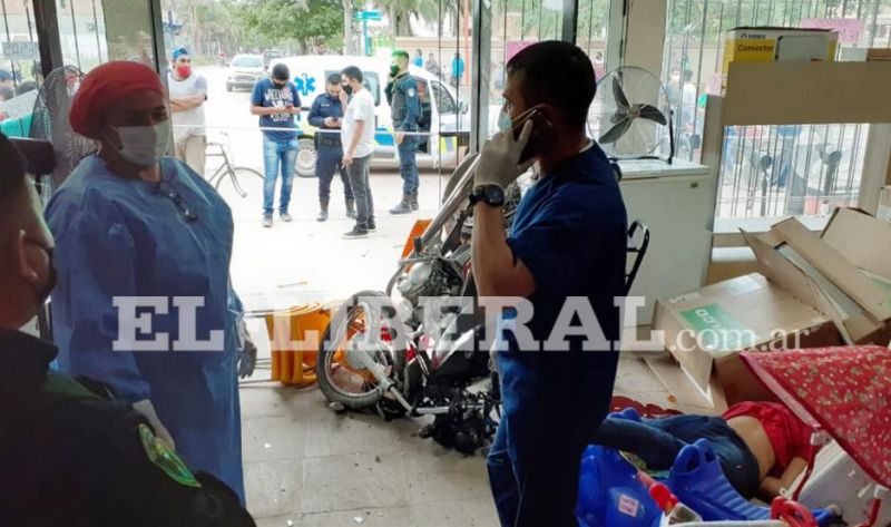 De este modo, la moto irrumpió en el salón de ventas, en donde el joven terminó tendido sobre el lugar.