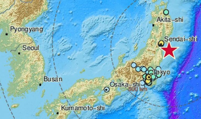 El terremoto se produjo a las 18.09 locales (06.09 de Argentina) en aguas del Pacífico, en la región de Miyagi, a una profundidad de 60 kilómetros, según la JMA, que alertó del riesgo de tsunami, con olas de un metro, consignó la agencia AFP.