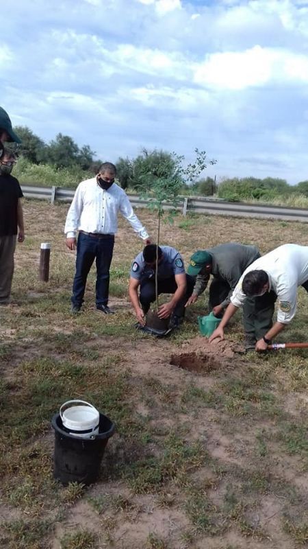 Estuvieron presentes el Intendente Cesar Andrada, la Diputada Provincial Prof. Viviana Campos, Intendente de Parque Nacionales, Sub-Director de Bosques de la Provincia, Directora del Jardín de Infante, Policía de la Comunitaria, y Personal de Parque, de la Plantación Simbólica de Plantas, con la idea de tener presente el Día de la Memoria.