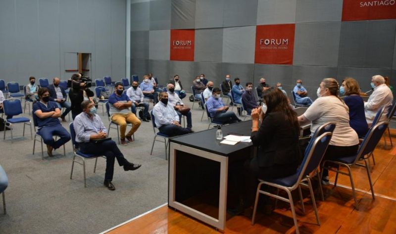 En el Centro de convenciones Fórum, la ministra de Salud, Lic. Natividad Nassif junto al subsecretario Dr. César Monti se reunieron con intendentes, comisionados municipales y directores de hospitales para planificar la vacunación COVID-19 para proteger a los adultos mayores 60 años en las localidades del interior con mayor densidad poblacional.