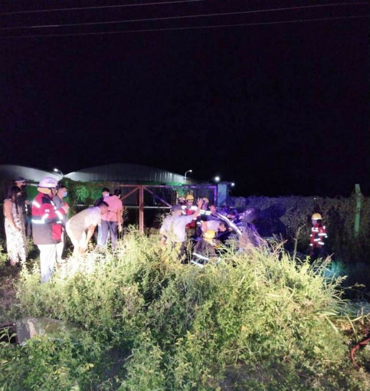 Como consecuencia del impacto, el conductor y su acompañante quedaron atrapados dentro del vehículo. Los bomberos voluntarios de Puerto Tirol intervinieron para sacar a ambas personas del automóvil.