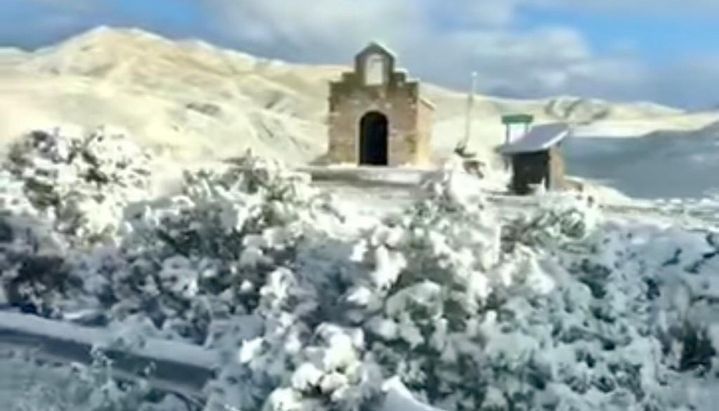 Las bajas temperaturas dejaron cubierta de nieve la Cuesta del Obispo. Esto se obseva muy bien el video grabado en el lugar por Franco Viveros, quién lo compartió en la red social Facebook.
