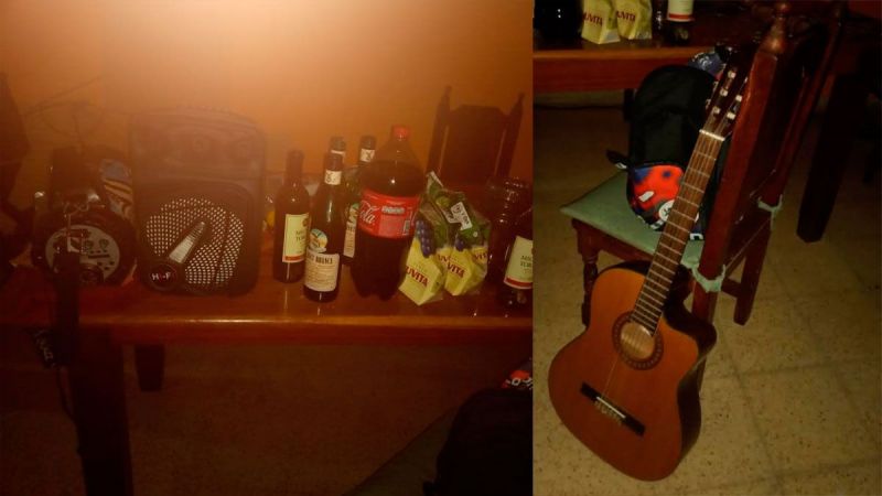 En tanto en el grupo 5 del barrio Misky Mayu de la ciudad de La Banda, se desarrollaba una reunión donde once jóvenes entre ellos dos menores de edad consumían bebidas alcohólicas y escuchaban música en alto volumen. En el lugar se desecharon las bebidas, se procedió al secuestro de los equipos de sonido, una guitarra criolla y se demoró a los ocho invitados mayores de edad, en tanto la propietaria del lugar fue aprehendida, todos trasladados a base de Comisaría Comunitaria Nº 12, donde los menores fueron restituidos a sus progenitores.