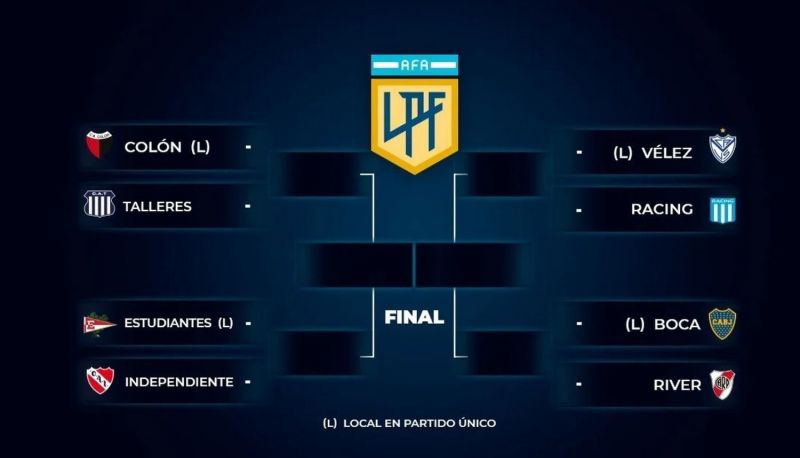 Las Semifinales se disputarán en estadio neutral a ser determinado por la Liga Profesional de Fútbol de la AFA. En caso de igualdad al cabo de los 90 minutos reglamentarios, el partido también se definirá en los penales.