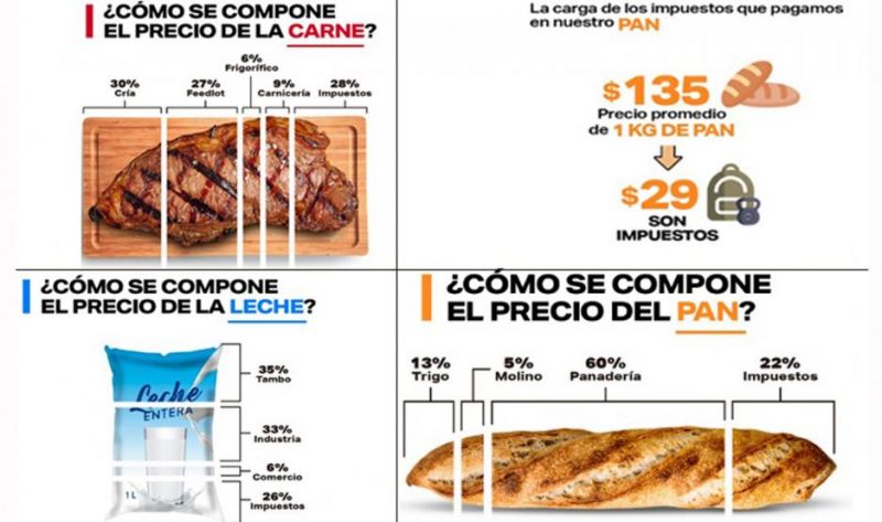 David Miazzo, economista jefe de la Fada, sostuvo sobre el análisis de los precios realizado que “este estudio demuestra la alta carga tributaria que tienen alimentos que son básicos, como el pan, la carne o la leche. En promedio, 1 de cada 4 pesos que pagamos por estos productos, son impuestos. En el caso del pan, pesan más los impuestos, que la propia harina”.