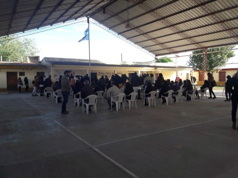 Las instalaciones de la centenaria Escuela N° 913 Capitán Pedro E. Giachino se convirtió en el vacunatorio para el personal que cumple funciones en establecimientos educativos públicos y privados del nivel inicial, nivel primario y escuelas especiales de todo el departamento Alberdi.