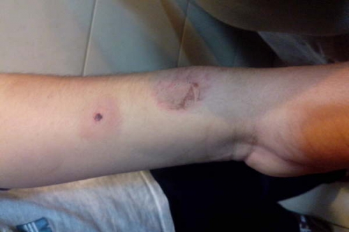 Éstas muestran toda una dentadura grabada a sangre en un brazo del muchacho; arañazos en el abdomen y la espalda.