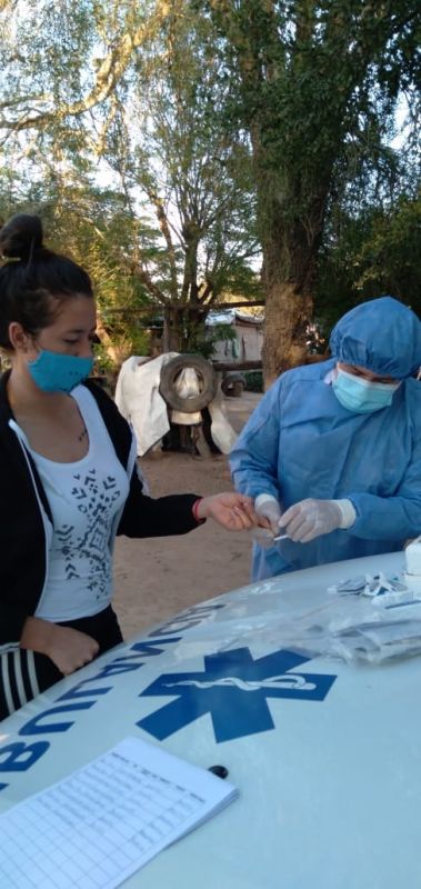 Tiempo de lectura: 24 segundosHoy se realizó en la Localidad de Monte Rico, distante a 47 km de Campo Gallo, una pesquisa epidemiológica con test rápido de covid a los pobladores por la detección de casos positivos en los últimos días.