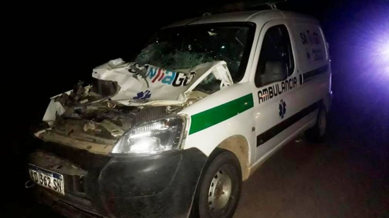 Pasadas las 21 horas de este miércoles se produjo un accidente de tránsito sobre Ruta provincial 6, a pocos kilómetros de la ciudad de Quimilí, donde una ambulancia proveniente de la localidad de Sachayoj, impactó violentamente con un burro que se atravesó en la cinta asfáltica.
