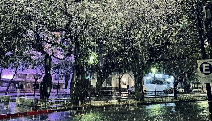 "El aire frío en altura se instaló en la zona de Mendoza, San Luis y Córdoba, en el centro de Argentina, y favoreció la ocurrencia de nevada", precisó.