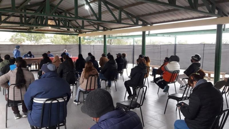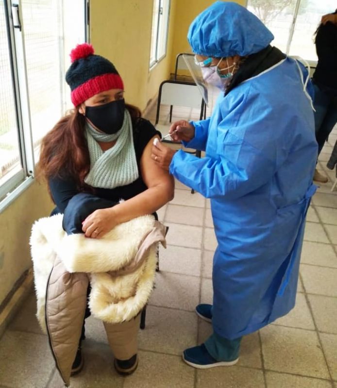 A pesar de una jornada nublada y muy fría, desde primera hora los vecinos concurren a ser inoculados de acuerdo a los turnos establecidos a los 1.100 personas que se encuentran empadronadas de la Ciudad y de los Parajes y/o Localidades del Interior del Departamento Alberdi.