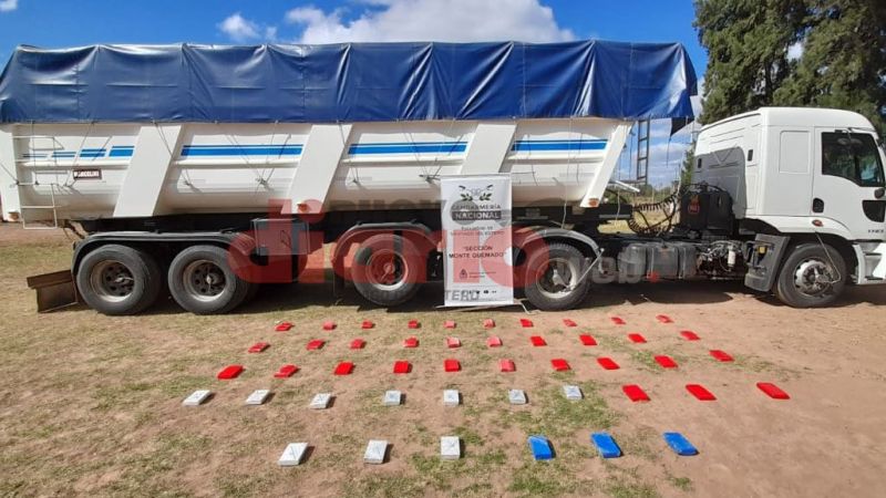 Personal de la Fuerza realizó la inspección correspondiente y detectó en la base del semirremolque una caja de cartón que contenía 46 paquetes rectangulares con características similares a los utilizados para transportar estupefacientes.