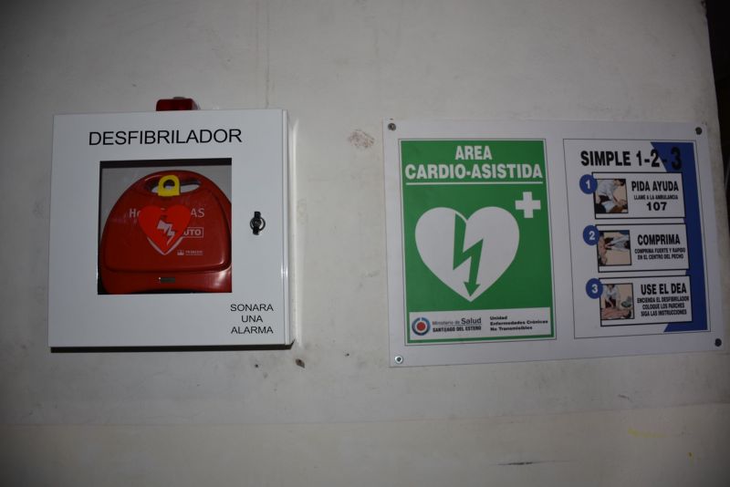 Para finalizar, el Dr. Luis Orellana, médico cardiólogo referente de la prevención de enfermedades crónicas, se refirió a la inauguración de la zona cardio asistida “en Santiago del Estero es un viejo anhelo contar con equipos de desfibrilador externo para auxiliar en casos de colapso cardíaco. Está recomendado colocarlos en zonas de alta concurrencia pública para mejorar los resultados de reanimación de pacientes. En este día colocamos cuatro desfibriladores, distribuidos estratégicamente en el Ministerio de Salud”. Asimismo, informó cómo actuar en los casos de descompensación de las personas “primero se realiza el masaje cardiaco, llamada a la ambulancia e inmediatamente se saca el desfibrilador y se lo aplica al paciente. Así se aumentan las posibilidades de obtener recuperaciones exitosas.”