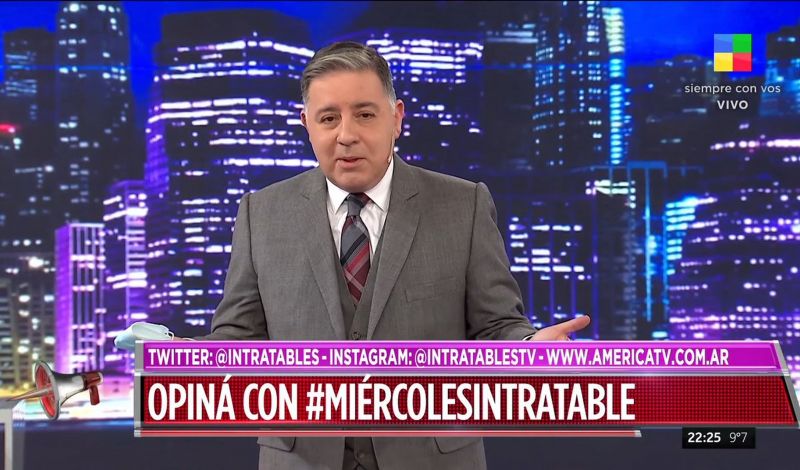 “Espacios como este no se pueden perder. Intratables escribe una parte de la historia de este canal. Mucho más Santiago (del Moro) que yo, que lo mío es más chico. Pero los programas son más importantes que los conductores. No me imagino América sin Intratables. Es uno de esos clásicos de la televisión”, cerró.