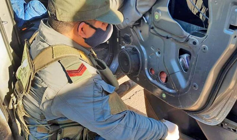 En presencia de testigos, los funcionarios controlaron los paneles de las puertas, donde encontraron 14 paquetes rectangulares, los mismos se encontraban sujetados con alambres a las puertas delanteras. Todos contenían una sustancia pulverulenta y blanca en su interior.