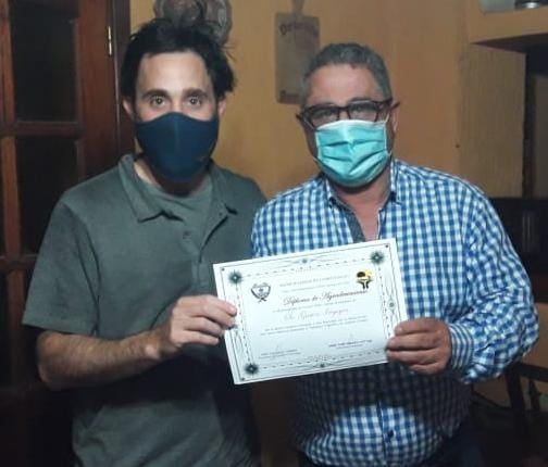 Gastón Yrigoyen, vicepresidente del Consorcio de Productores Alberdi, fue uno de los primeros en recibir este reconocimiento que se está entregando de manera individual a cada una de las personas que han colaborado, cuidando todos los protocolos.