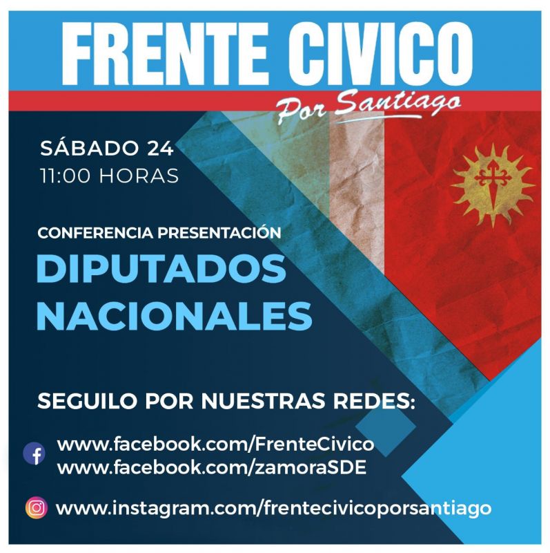 Tiempo de lectura: 30 segundos23/07/2021 - 21:14 Política Este sábado 24 de julio de 2021, las autoridades del Frente Cívico por Santiago harán la presentación, ante la comunidad, de los precandidatos a diputados nacionales.