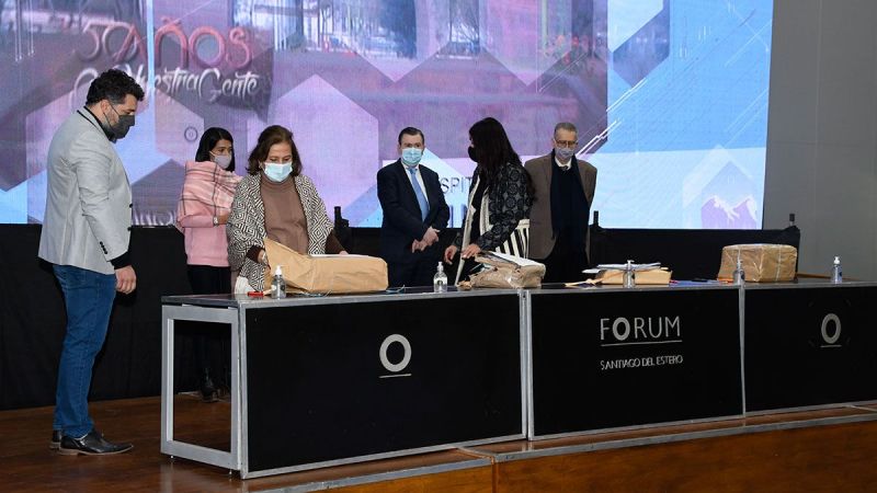 El gobernador Gerardo Zamora, acompañado por la ministra de Salud Natividad Nassif y otros funcionarios provinciales, realizó en el Fórum la apertura de sobres de licitaciones para la construcción de tres hospitales en la localidades de Campo Gallo, Pinto y Fernández. Del acto participaron además los intendentes de esas ciudades, José Vittar, Jorge Leguizamón y Víctor Araujo.