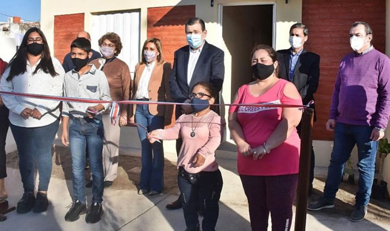 El gobernador de la Provincia, Dr. Gerardo Zamora acompañado del vicegobernador de la provincia, Dr. Carlos Silva Neder, ministro de Desarrollo Social, Dr. Ángel Niccolai, la intendente de la capital, Ing. Norma Fuentes y autoridades municipales, dejaron inauguradas 34 viviendas sociales.