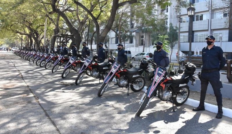 En nombre del Gobernador Dr. Gerardo Zamora; el Jefe de Gabinete de Ministros, Elías Suárez junto con el Ministro de Gobierno, Seguridad y Culto, Dr. Marcelo Barbur y el Secretario de Seguridad, Marcelo Pato, entregaron 25 motocicletas modelo XR150L a la Policía de la Provincia.