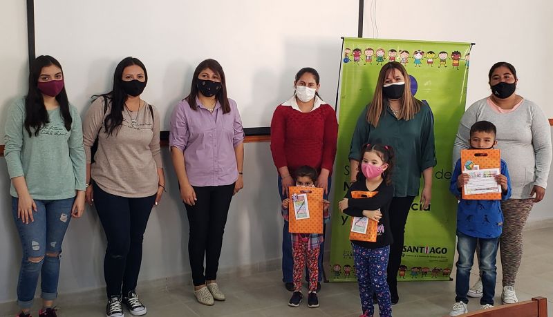 Para concretar la entrega de premios, la subsecretaria de Niñez, recibió a los niños y niñas junto a sus familias. También se hizo entrega de una distinción a la docente María de los Ángeles Olivera del Jardín Nº 744/335 de Esquina Pozo Dpto. Banda, quien envió los dibujos de todos sus estudiantes.