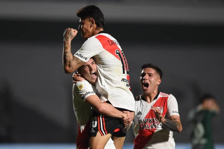 Con equipo de emergencia por lesiones y jugadores citados para las Eliminatorias, River Plate revirtió el resultado y le ganó 2-1 a Sarmiento en el marco de la novena fecha del torneo 2021 de la Liga Profesional de fútbol. Jorge Carrascal y Enzo Pérez en el minuto 45 del segundo tiempo gritaron para la visita. Alanís había abierto el marcador para el dueño de casa.
