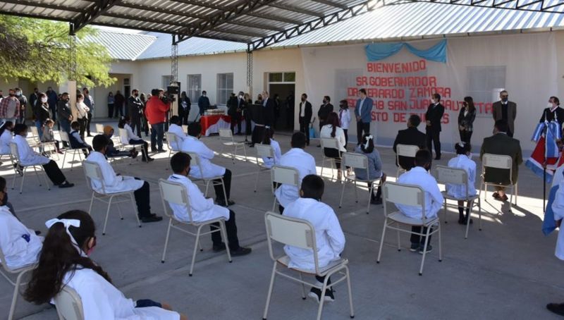 Tiempo de lectura: 2 minutos, 15 segundosHabilitó las refacciones y ampliación en la escuela N° 948 “San Juan Bautista” y de la escuela secundaria agrupamiento N° 86146/142 en la localidad de Puesto de los Juanes, en el departamento Loreto.