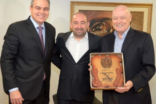 En nombre de la comunidad bandeña, el intendente Pablo Mirolo se sumó ayer al 50º aniversario de Canal 7, y en el transcurso de una visita les entregó un presente al presidente del directorio de la empresa, doctor Dr. Nestor Ick, y al vicepresidente y director ejecutivo, licenciado Gustavo Ick.