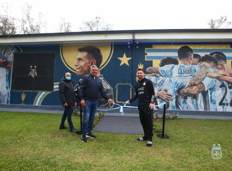 Ahora, el mural que YPF levantó le hace compañía a otros homenajes. En septiembre, al regresar para jugar las Eliminatorias, los jugadores encontraron una sorpresa en el predio. El vestuario había sido reacondicionado y ploteado a tono con los campeones de América.