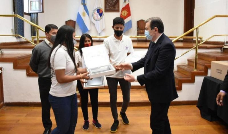 Los estudiantes, pertenecientes al último año, recibieron los dispositivos tecnológicos con los que fueron beneficiados.
