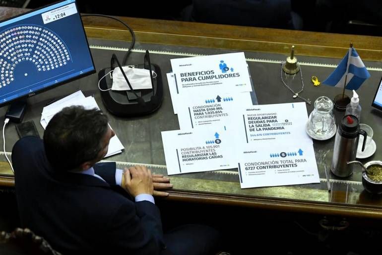 Además, el proyecto exime de pagar las deudas de micro y pequeñas empresas, contribuyentes de ganancias e IVA y monotributistas menores de $100 mil, lo que beneficiará a más de un millón de contribuyentes.