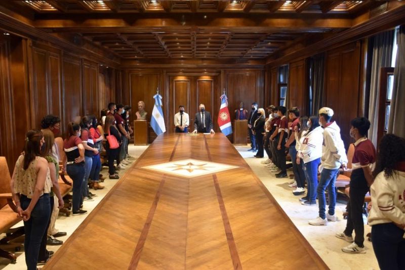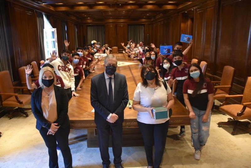 Durante el mediodía de este jueves, en el marco del programa "Conociendo Mi Provincia", estudiantes del último año escolar visitaron la sede del Ejecutivo provincial y tras conocer el Salón Juan Felipe Ibarra, fueron recibidos por el Jefe de Gabinete de Ministros, Elías Suarez, quien además de saludarlos y contarles sobre los planes estudiantiles, les entregó las tablets que forman parte del programa "Metas Digitales".