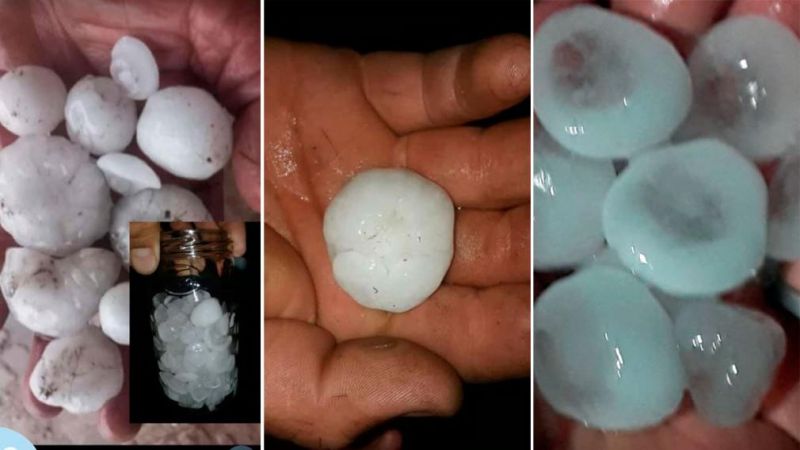 En horas de la noche informaron desde Monte Redondo, departamento Loreto, la caída de granizo causando daños materiales en vehículos y hogares.
