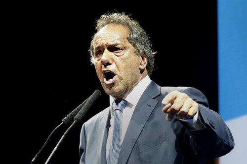 A un día del cierre de campaña electoral Scioli, junto a su compañero de fórmula Carlos Zannini, se reunió con gremios cordobeses que apoyan la candidatura presidencial del FpV y sostuvo que ese espacio político es "el que mejor le va a cuidar el empleo".