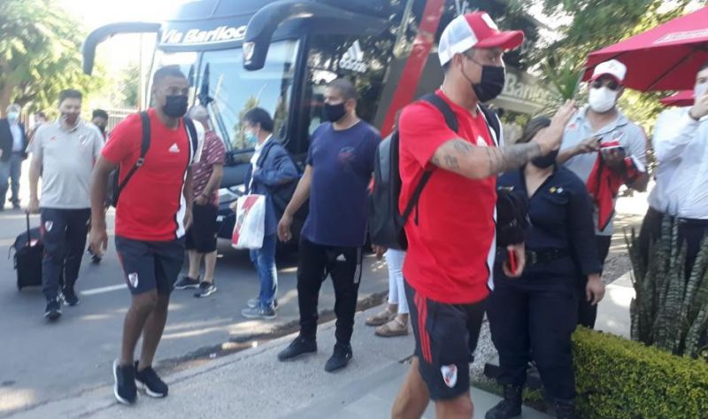 River arribó a Santiago del Estero a las 17.30 y, en medio de un operativo policial y una caravana con cientos de hinchas, se trasladó hacia la ciudad de La Banda donde descansará pensando en el partido por la Copa de Campeones que disputará mañana ante Colón de Santa Fe en el estadio Único Madre de Ciudades.
