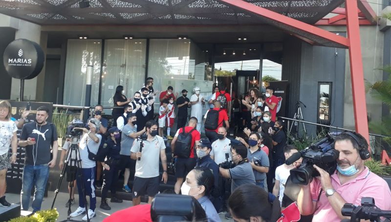 Con todas las entradas agotadas, cientos de hinchas se agolparon en las afueras del hotel céntrico bandeño a la espera de poder conseguir una foto o ver de cerca a figuras de la talla del entrenador Marcelo Gallardo y jugadores como Julián Álvarez, Leo Ponzio -que disputará su último partido oficial con la camiseta del Millonario-, entre otros.
