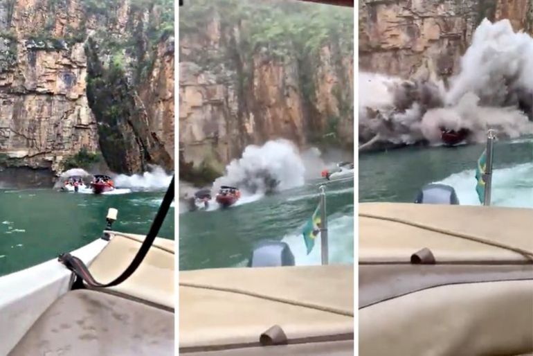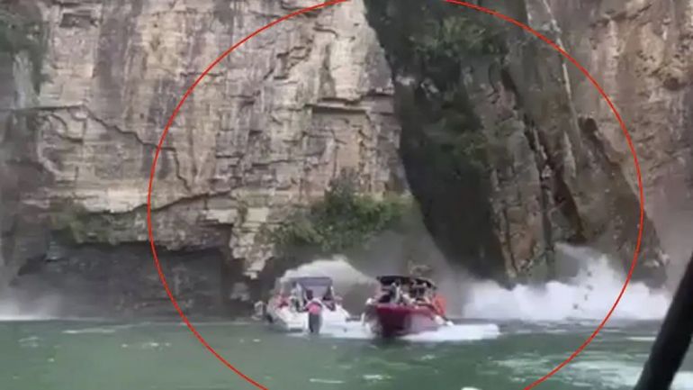 El desprendimiento de una parte del cañón ocurrió a las 11 de la mañana y fue filmado por otro turista y muestra cómo una pared rocosa cae desde una altura de cinco metros e impacta sobre las tres embarcaciones. Dos quedaron totalmente hundidas.