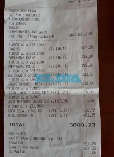 Allí, la familia pidió unos panchos, unas empanadas, sandwiches de miga y algo para tomar. Cuando recibieron el ticket, quedaron anonadados: sólo los panchos costaban $772 cada uno, es decir, terminaron pagando $1444.
