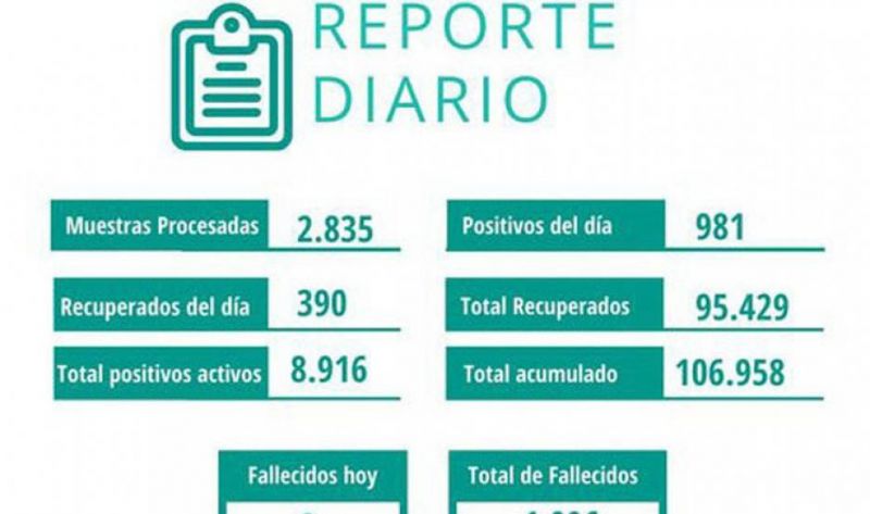 Se procesó un total de 2.835 muestras y se confirmaron 981 casos positivos, Capital-Banda (431) e interior de la provincia (550).
