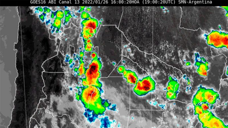 El SMN emitió a las 16 horas una alerta a corto plazo que abarca un área comprendida entre las provincias de Santiago del Estero, Salta y Tucumán.