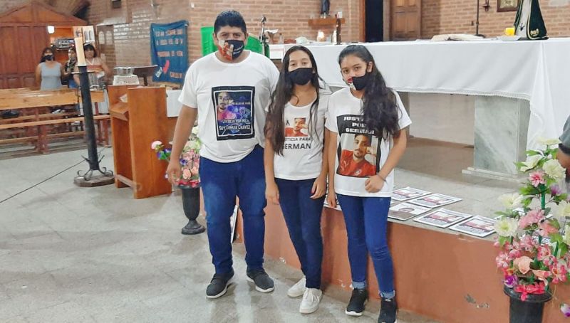En la ciudad de Campo Gallo, su familia mandó oficiar durante la jornada de ayer una misa al cumplirse dos años del asesinato de Germán. Allí familiares y amigos del joven cajero se congregaron para pedir por su descanso eterno, y que se haga justicia.