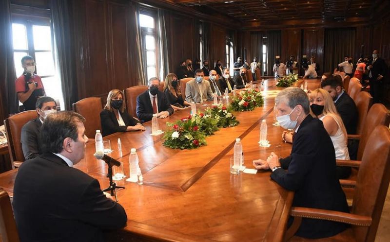 La reunión se realizó en el Salón de Acuerdos, donde también estuvieron el vicegobernador Carlos Silva Neder; el jefe de Gabinete, Elías Suárez, y todos los ministros. Además de la intendente de ciudad Capital, Norma Fuentes.