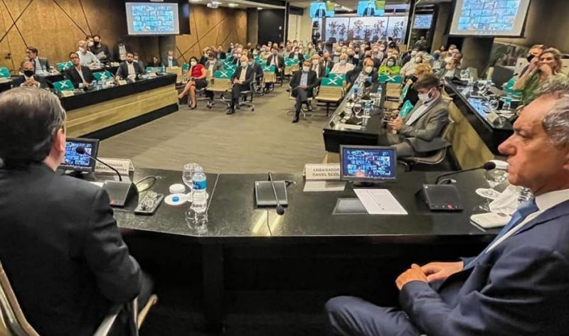 En una de las citas centrales de la presencia del gobernador Zamora en Brasil, al cierre de la tarde participó en la sede de la FIESP, la poderosa central industrial de San Pablo, de un encuentro con su presidente, Josue Gomes da Silva y más de 200 empresarios, coordinado por el embajador Scioli.