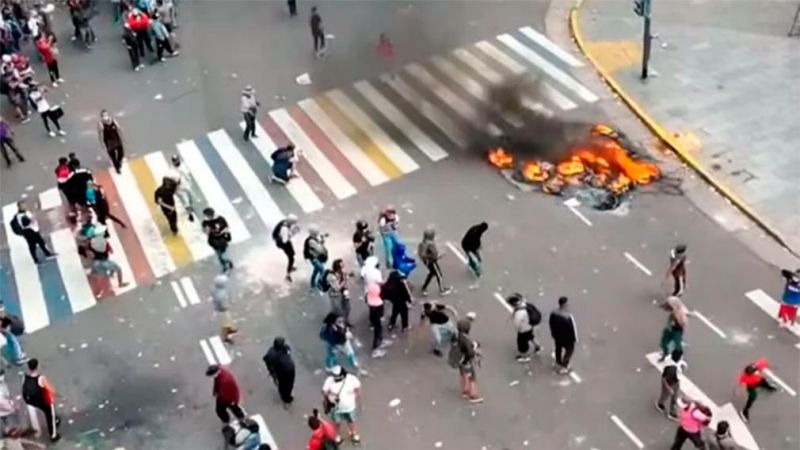 La escalada de tensión y violencia inició poco más de una hora después de que comenzara oficialmente la sesión de Diputados en el Congreso. Primero se observó una quema de gomas literalmente frente al edificio y luego, un grupo de manifestantes, comenzó con un ataque a pedradas a las ventanas del Congreso.