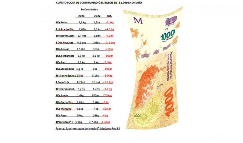 En un año, entre el verano del año pasado y este verano que terminó este domingo, el poder de compra del billete de $1.000 experimentó una caída tal que por ese monto en la actualidad se adquieren muchas menos unidades que el año pasado debido a la suba de precios que experimentaron los alimentos y otros productos como los combustibles o los cigarrillos.