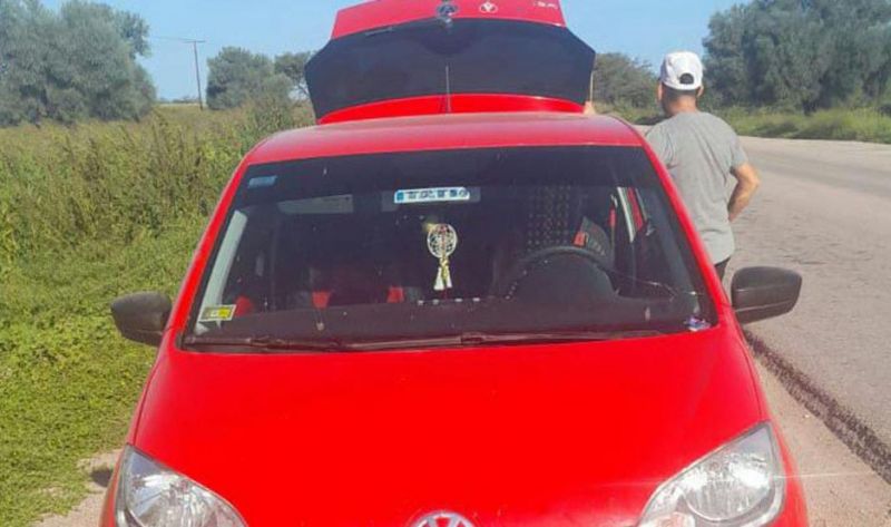 En el control vehicular, los policías detuvieron la marcha de un automóvil Volkswagen Take Up rojo, al mando de un joven de 21 años y acompañado por otro, de 17, ambos con residencia en Sacháyoj, Alberdi.